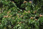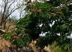 | Description: | Very large deciduous, flat-topped tree with smooth bark, very rarely rough; young branches finely brownish-pubescent. Stipules lanceolate, c. 6-7 × 2-2.5 mm. Leaves bipinnate with 5-7 pairs of pinnae; leaflets in 9-16 pairs per pinna; with a small but distinct "heel", glossy dark-green above, pubescent beneath only on the midrib and margins (occasional hairs on the primary lateral nerves when young). Flowers in semi-spherical heads, white; staminal tube conspicuous, crimson, exserted up to 2.8 cm beyond the corolla. Pod dehiscent, pale brown to reddish or purplish, glossy, becoming hairless with age. |