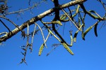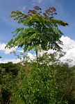 | Description: | Large tree, up to 50 m tall. Bark smooth, pale grey. Leaves large, 50 × 30 cm, 2-pinnate; young leaves reddish. Flowers in racemes, green with orange-red stamens. Fruit a flat pod with a thick ridge or narrow wing along the top suture. |