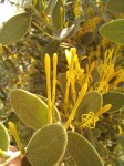 Small hemiparasitic shrubs with simple or forked hairs and a single haustorial attachment. Flowers 1-3, borne in axils; bract cup-shaped with small limb. Corolla tubular below, 5-merous, with radially arranged lobes spreading and later reflexed; tube with basal swelling, constricted above and narrowly funnel-shaped above; filaments erect, upper part thickened and coiling at anthesis, attached nearly halfway up corolla lobes. Berry narrowly obovoid. Derivation of name: from the Greek actinos meaning a ray and anthos a flower. Worldwide: 2 species in SE and South Africa Zambia: 1 taxon. |
