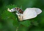 | Notes: | 2 colour forms occur. The photos show the male of f. spurcata with the orange-red head and thorax, black abdomen and a single long streak on the forewing. In the photos right the specimen poses in the typical threat display showing warning colours. | ||