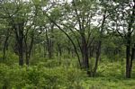 The main vegetation types consist of mixed miombo and Brachystegia woodlands on the escarpment and higher areas of Chewore. The valley floor is dominated by vast expanses of mopane (Colophospermum mopane) woodlands or dry deciduous thickets known as 'jesse bush'. More dense riparian vegetation can be found along the banks of the pools and the, often seasonal, tributaries, which cross the valley on their way to the Zambezi. The more open woody vegetation on the alluvial soils of the floodplains is dominated by open forests of large Faidherbia albida and small patches of more diverse woodland on slightly higher ground of old islands or termite mounds, featuring Kigelia africana, Trichilia emetica or majestic specimens of Ficus bussei.