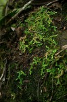 Plant creeping, moss-like, branched repeatedly, rooting for most of its length, flattened against the ground. Leaves dimorphic; lateral leaves ovate-elliptic in outline, spreading, 2 × 1.1 mm, base unequally cordate, apex pointed, margin minutely toothed, larger than median leaves; median leaves elliptic, pointed, up to 1.2 mm long. Leaves bright green, curl beneath the stem when dry. Strobili situated on the end of the branches, 4-8 mm long; sporophylls similar to the median leaves, in 4 lines. |