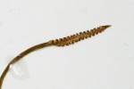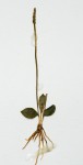 Rhizome pear-shaped to rounded or narrowly oval, 3-11 × 2-4 mm, old leaf-bases absent; roots dense, descending, wiry. Leaves mostly 2 (1-3), held at 20° from the horizontal or appressed to the ground, dark green often with a reddish to orange coloration. Petiole up to 2 cm long, subterranean for most of its length (75-90%). Sterile lamina up to 17 × 10 mm, elliptic to broadly ovate in outline, apex pointed to sometimes rounded, base wedge-shaped to truncate, with an apparent pale pseudo-midrib formed towards the base of the lamina only; fertile segment up to 7.2 cm long, inserted at the base of the lamina. Sporangia 5-15 pairs, apex pointed. |