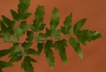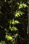 Climbing fern. Rhizome creeping, scales linear, blackish-brown, c. 1.5 mm long. Fronds spaced apart, growing to 6-12-20 m high. Stipe and rhachis of an elongated frond function as the climbing stem, from which short secondary rhachises with an opposing pair of pinnae arrise, apical bud densely covered with short brown hairs. Sterile pinnae bipinnate to 3-pinnate or 4-pinnatifid on the basal pinnae, margins toothed to lobed; pinnules lanceolate-oblong, up to 11 cm long,finely hairy along secondary rhachises and the pinnule midribs, veins with scattered hairs on both surfaces. Fertile pinnae bipinnate to 4-pinnate, veins hairy on both surfaces; fertile pinnules up to 9 cm long, with numerous protruding fertile lobes, up to 12 mm long; sporangia 4-14 pairs, arranged in 2 rows along the margins (pinnule apex without fertile lobes). |