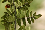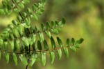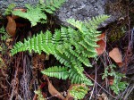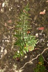 Rhizome erect to short creeping; rhizome scales dark to golden brown, paler margins, top slowly tapering to a point, up to 10 mm long. Fronds tufted, erect, coriaceous. Stipe brownish black, shining, up to 22 cm long, as long to 1.8 times as long as the lamina, with a few scales near the base, similar to those on the rhizome. Lamina sharply triangular in outline, c. 100-180 mm × 56-150 mm, bi-pinnate to tri-pinnate on the basiscopically developed basal pinnae, pinnae petiolate, deltate, up to 15 pairs. Pinnules up to 18 mm × 3-6 mm, oblong to ovate-rectangular in outline, deep subglossy green above, paler below, margins entire, apex rounded, base cordate, articulated to the apices of short petiolules, glabrous on both surfaces, veins hardly visible, free. Rhachis, secondary rhachis brownish black, with short brown hairs on the upper surfaces. Sori marginal, continuous to within a few milimeters of the apex, indusium entire, membranous, continuous. |