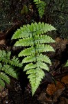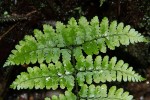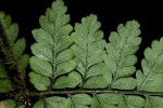 Rhizome erect to suberect, up to 7 mm in diameter; rhizome scales brown, up to 9 mm long, lanceolate in outline, margin entire, tapering to a drawn-out point. Fronds tufted, arching, herbaceous. Stipe up to 53 cm long, straw-coloured, reddish-brown near the base, densely set with stiff dark brown scales standing out at right angles to the stipe. Lamina up to 50 × 40 cm, 3-pinnate to 4-pinnatifid on the basiscopically developed basal pinnae, deltate to roughly ovate in outline. Pinnae narrowly oblong-attenuate, spaced apart, almost equally sided. Ultimate lobes oblong, margins weakly lobed or entire, apex lobed or entire, rounded, subglabrous with few brown, upright scales above and below. Rhachis straw-coloured, set with scales similar to rhizome. Sori round, up to 1.2 mm, 12-20 per lobe set in the upper half of the pinnules; indusium kidney-shaped to subcircular, c. 1mm in diameter, membraneous, entire. |
