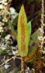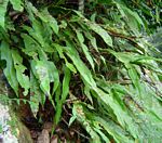 Rhizome long creeping, up to 4 mm in diameter, scandent, branched; rhizome scales appressed, shiny, lanceolate, up to 7 mm long, with a dark brown central stripe and paler ciliate margins. Roots thin, wiry, singly below each old frond. Fronds widely spaced on rhizome or on short side branches, erect to arching, deciduous, simple. Stipe articulated near the base, up to 6 cm long, covered with scattered scales similar to, but smaller than those on the rhizome. Lamina 14-33 × 1.5-6.5 cm, glabrous on both surfaces, thinly membranous (dry) to thinly coriaceous, linear lanceolate in outline, base wedge-shaped, apex abruptly ending in a tip, margin subentire, wavy; midrib prominent below; veins obvious, simple, sometimes forked near the costa, finely parallel. Sori circular, up to 2.5 mm in diameter, in a irregular line on either side of the midrib, situated within the inner half of the lamina; indusium round to kidney-shaped, small, hairless, dark brown, entire.