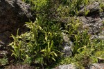 Habitat: On wet rocks or tree trunks in deep shade of evergreen forest, often near spray of waterfalls, under overhangs, in narrow clefts or in caves.