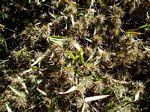Woody perennial, growing in dense clumps. Culms 3–10 m × 5–10 cm, erect. Leaves: lamina 5–25 × 1–3 cm, linear-lanceolate to lanceolate, ± glaucous with a fine pungent tip. Spikelet clusters 4–8 cm in diameter,spherical, ± confluent, spiny; bracts to 4 mm, ovate. Spikelets 15–40 mm, very narrowly lanceolate; 1(–2) upper florets bisexual, the rest reduced to lemmas; glumes ovate to oblong, lower 5–8 mm; lemmas narrowly lanceolate, the lowest 12–20 mm, ± hispid on the back, tipped with a rigid spine to 7 mm. |