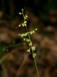 Annual grass 20-80 cm high. Leaves broadly linear to narrowly lanceolate, sagittate ate the base with lobes 2-30 mm long. Inflorescence a narrowly oblong to ovate panicle, 5-15 cm long. Spikelets secund on racemose branches; bristles 2-15 mm long. Spikelets suborbicular, 2 mm long, laterally compressed. Inferior glume 1/3, the superior 1/2 length of spikelet. Superior lemma conspicuously gibbous, keeled, rugose.