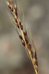 Notes: The dark brown to almost black spikelets and the prominent ring of stiff white hairs around the nodes are very distinct characteristics of this grass.
