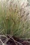Densely tufted perennial. Culms 10-70 cm × 1-3 mm, sparsely to densely villous. Leaves: lamina usually convolute-cylindric; upper surface glabrous, lower villous. Inflorescence a lax, slender, erect or curved panicle, composed of 1-3 fascicles of spikes; peduncles slender. Spikelets 2-3 mm. Glumes 2-3 mm, pale to dark reddish-brown, glabrous or sometimes hairy on or near the midrib. Nutlet (utricle-like) 3-4 mm, including a 1.5-2 mm beak; basal hairs 2/3 to nearly as long as nutlet. |
