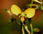 Perennial erect or somewhat scrambling herb. The leaves and leaf-sheaths covered in hooked "sticky" hairs, which easily attach themselves to fur and clothing. Flowers in terminal inflorescences, yellow, short-lived, closing by the afternoon.