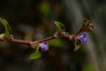 Perennial herb, usually with a distinct base in the form of a tuberous rhizome or sometimes a cluster of corms. Stems decumbent or ascending, occasionally scrambling into bushes up the 60 cm tall, unbranched or branching from the lower nodes, sparsely hairy to densely appressed white pubescent. Leaves distichous, narrowly lanceolate to lanceolate-oblong, 2.5-15 cm long, flat or folded along the length, mostly hairless above, except for submarginal bands of hairs, densely whitish or greyish hairy; margin ciliate. Inflorescences mostly axillary, sessile, 5-16 per shoot in the axils of leafy, strongly decrescent bracts; shoots often zigzag. Corolla blue to violet, mauve or lilac; stamens with filaments up to 10 mm long, bearded with blue or violet hairs; style usually hairless or very sparsely bearded, with an apical finely pointed swelling. |