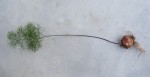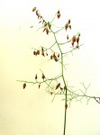 Perennial herb growing from a globose bulb, 2.5-3.7 cm in diameter. Leaves 4-10, basal, terete, erect, 7.5-10 cm long, normally gone before the stems appear; scape erect, 7.5-30 cm tall including the inflorescence; peduncle as long as the panicle, sometimes spirally twisted; panicle, 7.5-25 cm long and broad, very lax, with zigzag rhachis, slender, spreading, or ascending; pedicels 1-2.5 cm long. Flowers bell-shaped, 0.4 cm long; segments oblong-obtuse, white or yellow, with a distinct brown keel; capsule ellipsoid, 4-5 mm long. |