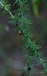 Slender scrambling shrub or climber. Stems with spreading branches, closely set with cladodes (leaf-like modified branchlets) in clusters of up to 12, unequal in length, up to 10 mm. Flowers whitish with yellow anthers, up to 6 inside the cladode clusters; fruits orange, turning blackish when old. |