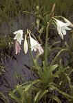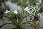 Bulbous perennial. It often grows in stagnant water, forming extensive colonies. Leaves narrow, less than 5 cm wide, and arching, folded along the length into a U-shape. Flowers more or less erect, white, usually without any pink or red markings once open. Fruits not beaked. |
