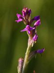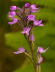 Slender terrestrial herb, up to 50 cm. Stem and inflorescence glandular hairy. Leaves near the base of the stem, lanceolate-elliptic. Inflorescence 5-many-flowered, often pyramidal at first, more elongated later. Flowers small, pink, mauve or purple; dorsal sepal forming a hood with the petals; lateral sepals spreading; lip linear-ligulate, entire; spur 3-5 mm long.