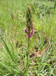 Terrestrial herb growing from testicular tubers with separate fertile and sterile shoots; sterile shoot up to 14 cm tall, leaves 1-4, erect, conduplicate, to 15 x 30 cm, elliptic to oblanceolate, acute; fertile shoot 60-100 cm tall, cauline leaves mostly sheathing with small free blades; inflorescence 15-25 cm, 15-30 flowered, ovary and pedicel 1.5-2.5 cm long, bracts 2.5-4.5 cm long, lanceolate, acute to acuminate, overtopping flowers; flowers borne horizontally, mauve to purple, galea spotted; dorsal sepal galeate, galea rounded, erect 12-18 mm long, 8-15 mm wide, 12-16 mm deep; spur borne horizontally from broad conical base, 12-17 mm long, decurved; lateral sepals suboblique, 13-20 mm long, oblong, subacute to rounded; petals 15-18 mm long, narrowly lanceolate, acute, erect; lip 11-15 mm long, linear, rounded or truncate; anther 5-6 mm long; stigma subsessile |