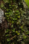 A small epiphyte. The widely creeping, prostrate, stems like pseudobulbs can form extensive mats, sometimes covering entire trunks and branches of the host trees. Leaves 2 per pseudobulb, suborbicular. Flowers solitary yellow with darker brown-yellow stripes.