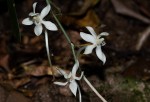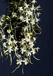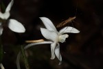 Low level epiphytic herb, occasionally lithophytic. Leaves 3 to 4, oblanceolate, dark green, fleshy or leathery with noticeable reticulate venation. Inflorescences up to 15 cm, pendent, up to 10-flowered. Flowers white, sometimes tinged pink on the spur. Spur slender, relatively short, 4-6 cm. This species is very similar to A. mystacidii, which is more widespread, usually has somewhat larger flowers with longer spurs. The different flowering times are often the easiest way to distinguish the two species.
