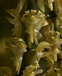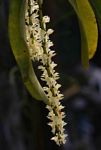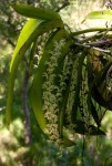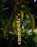 Robust epiphytic herb with a pendent stem. Leaves pendent, often twisted at the base, linear-lanceolate, usually sickle-shaped, 10-45 cm long, thick and fleshy. Inflorescences 1-several pendent spikes, 20-60 cm long, arising below the leaves. Flowers borne in whorls of 2-4 at the nodes, greenish-yellow, creamy-yellow to almost white, with a rather musky scent. Dorsal sepal narrowly triangular, arching over the column; petals linear to oblanceolate; lateral sepals linear; lip broad and curving downwards, frilled on the sides, more or less 3-lobed at the apex; spur 6-12 mm, slightly swollen in the middle. |