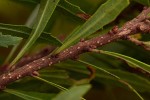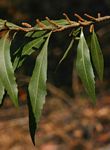 Small tree or shrub, up to 12 m, with unisexual flowers on different trees. Leaves narrowly elliptic, 5-10 cm long, abundantly dotted with golden glands, especially beneath; apex acute; margin entire with a few widely spaced teeth. Male spikes 0.8-3 cm; stamens 4. Female spikes 1.2-2.6 cm. Fruits c.2 mm in diameter, spherical, warted, covered with a white wax. |