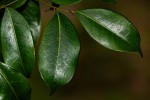 Medium to large tree. Bark grey, smooth, with creamy-white latex. Leaves simple alternate, elliptic, up to 14 cm long, somewhat leathery, dark glossy green above, hairless; apex with a distinct driptip c. 15 mm long; margin entire, somewhat rolled under; petiole 3-15 mm long. Inflorescences up to c. 1 cm in diameter on a bellshaped receptacle; peduncle up to 1.5 cm long. Flowers unisexual on the same receptacle; perianth segments absent; male flowers many with creamy-white to mauve stamens; female flowers solitary with a 2-3-lobed style. Fruit fig-like, embedded within the fleshy receptacle, ellipsoid c. 2 cm long. |