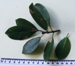 Medium to large evergreen or briefly deciduous tree, terrestrial or starting as a strangler. Bark smoothish, pale to dark grey, sometimes with vertical lines of lenticels; latex present. Leaves alternate or whorled, elliptic or obovate, 4.5-12 cm long, rather stiff and somewhat leathery, mid- to dark green above, dull and paler below, usually hairless or finely hairy; midrib prominent, sometimes yellowish; apex usually acute; margin entire. Figs borne singly or in pairs in the leaf axils, sessile or pedunculate, rarely on bare twigs, subspherical, 10-20 mm in diameter, densely hairy to almost hairless, yellowish or rarely pink when ripe. |