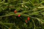 Leafless, pendulous, parasitic shrubs, favouring Bridelia as a host. Branches with flattened segments, 15-25 mm long and up to 4 mm wide. Bracteal cups sessile with flowers solitary or, occasionally up to 3. Berries round to ovoid-ellipsoid, 3-5 mm long, smooth, orange, on a short but distinct pedicel, 1-1.5mm long. |