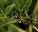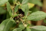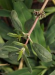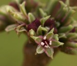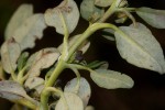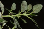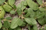 Many-stemmed more or less prostrate herb. Stems slightly succulent, up to c. 60 cm long. Leaves opposite, usually of different size in a pair, oblanceolate to more or less broadly elliptic, up to 4.5 cm long, slightly hairy below, often only on the midrib; petiole up to 2 cm, thinly winged and sheathing at the base. Flowers in 5-20-flowered axillary sessile clusters, pale green to purple. Fruit splitting c. 1/3 from the base along a thickened rim. |