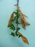 Deciduous shrub or small, multi-stemmed tree. Branchlets often spine-tipped. Leaves with 2-4 pairs of pinnae; rhachis ending in a hook-like extension; leaflets in 2-4 pairs per pinna, obovate to almost circular; petiole with a gland about midway. Flowers in fluffy, semi-spherical heads, creamy-white, appearing before the leaves. Pods flattened, pale brown. |