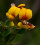 Erect or scrambling small shrub, up to 2 m tall. Stems with appressed or spreading hairs. Leaves 3-foliolate, with leaflets elliptic-lanceolate, sparsely woolly above, more densely so beneath. Inflorescences leaf-opposed, 8-32-flowered, sometimes fairly lax and elongated but often compact and short; peduncles 2-10 cm long. Flowers, yellow, turning orange-red with age; standard hairy on the outside. Pods c. 3-6 cm long, oblong, slightly curved. |
