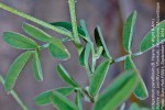 Annual or perennial shrubby herb, up to 1 m tall, with erect or spreading stems, sometimes woody at the base. Leaves 5-11-foliolateup to 60 mm long; leaflets elliptic-oblong, lanceolate or linear, up to 35mm long, almost hairless above, densely strigose beneath; stipules lanceolate-subulate, 1-5 mm long, erect, spreading or reflexed. Inflorescences long pedunculate racemes, up to 22cm long, more or less densely many-flowered. Flowers reddish-pink with wings twisted outwards away from the keel. Pods cylindric, 25-40 mm long, densely appresed strigose. |