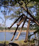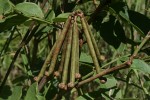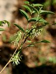 Mostly a shrub but occasionally a suffrutex or small tree. Leaves imparipinnate with 5-9 leaflets; stipels 1-4.5 mm long, subulate-setaceous, erect or spreading. Leaflets: terminal 3-12 × 2-7 cm, broadly obovate-elliptic; apex rounded; lateral leaflets often narrower. Inflorescence a raceme of numerous flowers. The flowers are small and inconspicuous but the fruits have a very distinct "hockey-stick" shape. |