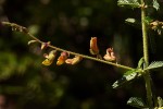 Perennial subshrub with slender prostrate or erect stems, growing from a woody rootstock. It may get up to 2 m tall but is usually much smaller. Stems pubescent with glandular tubercular-based hairs. Leaves often in clusters, short, up to 3 cm long, 8–34-foliolate; leaflets linear to oblong, 1–7 mm long, sometimes subfalcate, mostly hairless but often conspicuously glandular-ciliate; main vein more or less marginal; stipules linear- or ovate-lanceolate, 3–6 mm long, more or less persistent. Inflorescences axillary, often aggregated towards the apices of shoots to appear like leafy panicles; peduncle 5–15 mm long; rhachis 1–10 cm long; pedicels 2–5 mm long; bracts 2–3-fid, ovate, 2.5–3 mm long, ciliolate, soon falling; bracteoles ovate-lanceolate or lanceolate, 2-3 mm long. Calyx finely velvety, 2-lipped, one 2-lobed, the other 3-lobed and often ciliolate. Standard orange-yellow with purple-red veins, 7–8 mm long, emarginate; wings pale yellow, longer than the standard; keel petals greenish with reddish-purple nerves. Pods of 1–2 articles joined by a very narrow neck, hairless or finely velvety on the margins. |