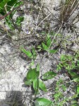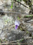 Herb with trailing or climbing stems growing from a woody rootstock; branches hirsute; leaves 3-foliolate, petiole (0.5)1.5-6 cm long, leaflets discolourous, 4.8-14.5 x 2.8-4.5 cm, narrowly ovate to narrowly elliptic, occasionally lobed, appressed pilose on upper surface, more densely appressed pilose on the undersurface; inflorescence a pseudoraceeme or panicle with 1-several flowers in each fascicle, the fascicles often more crowded towards the apex, pedicels 3-5 mm long; calyx 5-10(12) mm long, pilose with silvery hairs, 5-lobed, the upper two lobes tipped with (1)2 pedicellate glands1-3 mm long or glands absent; corolla 1-1.8 cm long, white to lilac; pods 1.5-2.5cm long, densely pilose, 1-2 seeded; seeds3-4 x 2 x 1 mm. |