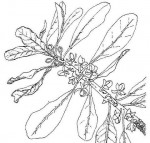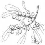 Small to medium-sized tree. Bark very rough and deeply cracked. Leaves elliptic, oblong or elliptic-oblanceolate, up to 16 cm long, shiny green, hairless with 7-14 pairs of lateral veins, apex broadly tapering or rounded; margin entire, sometimes wavy. Flowers are unisexual, mostly on different trees, creamy-green. Fruit ellipsoid, c. 2 cm long. See var. longifolia for comparison. |