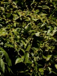 Shrub or rarely a small tree, up to c. 4 m. Leaves ovate to elliptic-lanceolate, up to 16 cm long, fairly thinly textured, light green above, somewhat blue-green below, mostly hairless (in var. abyssinica), some orange-red leaves often present; margin entire. Flowers in axillary clusters, small, yellowish to greenish, unisexual on different trees. Fruit c. 5 mm in diameter, almost round, almost hairless, pale green with whitish pustules. This variety has hairless or almost hairless stems and leaves.