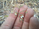 Laxly branched erect annual herb, up to c. 50 cm tall. Branches pinkish red, hairless. Leaves opposite, linear, up to 4 cm long, hairless; margin entire. Flowers terminal and axillary, solitary, with 4 white or pink, petal-like appendages. Capsule deeply 3-lobed, c. 2 mm in diameter, hairless, exserted on a reflexed pedicel. |