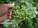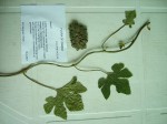 Stems twining or trailing from a perennial tuber; stems green hispid. Leaves: petiole 4-6 cm; lamina variable, triangular to pentagonal in outline, ± entire to deeply 3-5-lobed; base cordate to sagittate, hirsute. Inflorescences borne at the nodes, pedunculate. Male flowers borne in 3-4 cm, dense, spikes; flowers numerous, sessile. Female flowers borne in 1-1.5 cm, subcapitate spikes; flowers fewer, sessile. Fruits yellow-orange when mature, hirsute. |