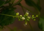 Shrub or small tree. Leaves trifoliolate; leaflets obovate to elliptic, 3-9cm long, glossy green above, paler below; domatia conspicuous in the axils of lateral veins below; margins irregularly crenate-dentate. Inflorescences axillary in branched or unbranched, catkin-like racemes. Flowers small cream or yellowish-green. Fruit fleshy, ovoid to near-spherical, orange-red to black when ripe. |