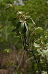 Usually a scrambling shrub, sometimes a small tree. Leaves 3-foliolate, ovate, with lateral leaflets strongly asymmetrical, densely covered in rusty or grey-green hairs, mainly on the under surface. Flowers in dense heads, leaf-opposed, yellowish-green, covered in rusty, woolly hairs. Fruit fleshy, 2-lobed with a warty surface.