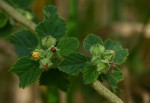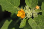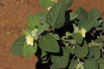 Annual or short-lived perennial herb or soft shrub up to 1 m. Leaves ovate with a cordate base, 3-7 cm long, green to grey-green, velvety with roughly toothed margins; petiole 1-3 cm long. Flowers in clusters, (sub)terminal at the stems and branches, bright yellow. Mericarps 8-12 but usually 10, c.7 mm long, birostrate at the apex with awns 3-4 mm long. |