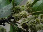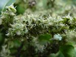 Medium-sized to tall tree. Bark grey, fairly smooth but flaking in older trees; young branches with conspicuous pale lenticels. Leaves broadly ovate, obovate to almost circular, 4-13 cm long, thinly textured, bright to deep green on both surfaces, veining slightly raised above and conspicuous below, hair-tuft domatia sometimes present in the axils of the veins below; margin coarsely toothed or scalloped. Flowers in axillary branched heads, yellowish-green, c. 5 mm in diameter, unpleasantly scented. Fruit a very small obovoid capsule, c. 3 mm in diameter, densely covered in short soft hairs. |