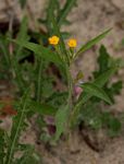 Annual herb to 50 cm. Leaves heteromorphic; lower leaves pinnatifid or pinnatilobed; upper lanceolate, unlobed, serrate. Racemes 2-12-flowered. Petals yellow to orange. Capsule 7-12 mm, ellipsoid. Seeds clavate, black. |