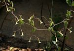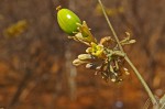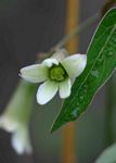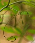 Herbaceous climber with long stems growing from a large, fleshy, underground tuber. Leaves variable, deeply 3-5 lobed or even 3-5-foliolate, up to 18 cm long and wide, lobes/leaflets narrow or wide, entire or more or less deeply lobed again, thinly textured to leathery, grey-green, often much paler below; petiole 1-9 cm long; 2 glands at the base of the leaf 0.5-1,5 mm wide on two separate auricles 1-2 mm wide. Inflorescences axillary, few-flowered, often ending in a curled tendril. Fruits fleshy, ellipsoid to spherical, green, sometimes with pale yellowish stripes, orange-yellow when ripe. |
