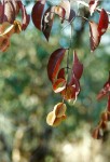 Deciduous straggling shrub or sometimes a climbing liane. Leaves opposite or subopposite, elliptic to broadly ovate, thinly textured, finely velvety below, turning red to plum-coloured in autumn. Flowers greenish-yellow in sparse axillary spikes. Fruit 4-winged, wings becoming red while centre is green, drying to golden-brown. |