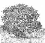 Shrub or small tree. Leaves on short lateral twigs, narrowly to broadly elliptic or obovate, small, usually c. 3 × 2 cm, dark green to grey-green above, densely velvety below, 3-6 pairs of lateral veins indented above, prominent below; margin entire, rolled under. Flowers creamy white to pale yellow, in dense, axillary and terminal spikes. Fruit c. 20 mm in diameter, 4-winged, rich reddish brown, in the centre with golden-brown wings. |