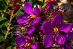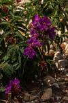 A soft wooded shrub, up to 3 m. Leaves ovate-lanceolate, densely covered in appressed rough hairs on both surfaces; 5-7-veined from the base. Flowers large in dense terminal inflorescences, corolla violet. |